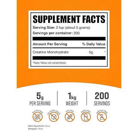 Thông tin sản phẩm BulkSupplements.com Creatine Monohydrate Powder - Micronized Creatine Powder, Unflavored - Pure & Gluten Free, 5g (5000mg) per Servings, 1kg (2.2 lbs) (Pack of 1)