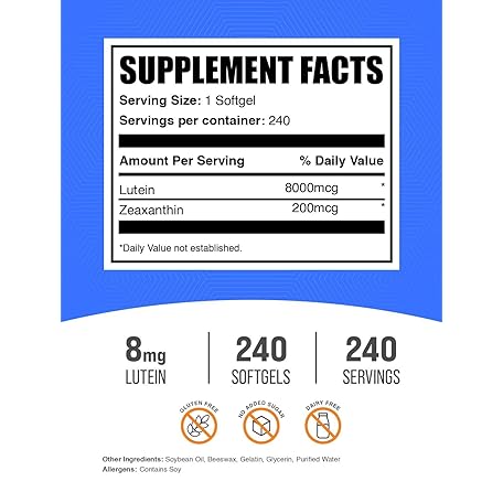 Thông tin sản phẩm BulkSupplements.com Lutein with Zeaxanthin Softgels - Zeaxanthin Plus Lutein, Lutein and Zeaxanthin Supplements, Eye Vitamins - Gluten Free, 1 Softgel per Serving, 240 Softgels