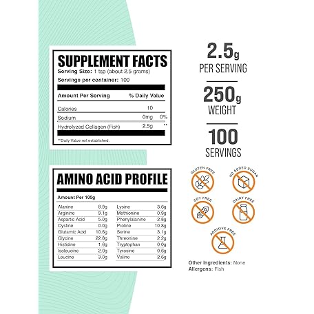 Thông tin sản phẩm BulkSupplements.com Marine Collagen Powder - Marine Collagen Peptides Supplement, for Hair, Skin, & Nails - Hydyrolyzed & Gluten Free, 2.5g per Serving, 250g (8.8 oz) (Pack of 1)