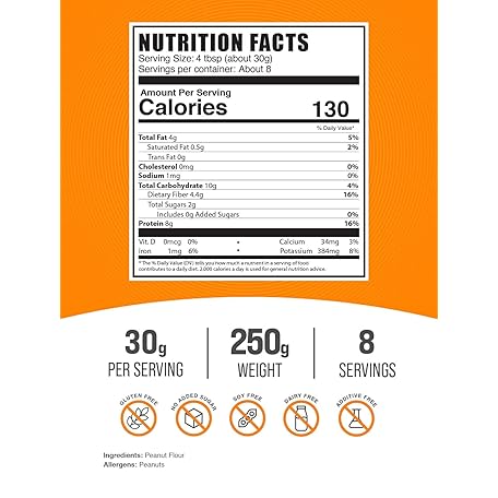 Thông tin sản phẩm BulkSupplements.com Peanut Flour Protein Powder - Deffated Peanut Flour, Peanut Protein Powder - Peanut Protein Flour, Gluten Free, 30g per Serving, 250g (8.8 oz) (Pack of 1)