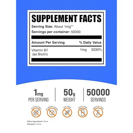 Thông tin sản phẩm BulkSupplements.com Pure Biotin Powder - as Vitamin B7, Biotin Vitamins for Hair, Skin and Nails - Gluten Free, 1mg per Serving, 50g (1.8 oz) (Pack of 1)