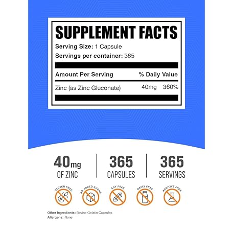 Thông tin sản phẩm BulkSupplements.com Zinc Gluconate Capsules - Zinc Supplements, for Immune Support - Gluten Free, 1 Capsule per Serving, 365 Count (Pack of 1)
