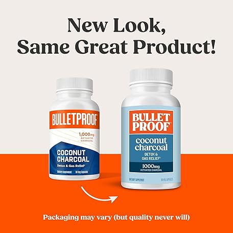 Thông tin sản phẩm Bulletproof Coconut Charcoal Detox and Gas Relief Capsules, 90 Count, Sourced from 100% Coconut Shells, Activated Charcoal for Bloating Support, Packaging May Vary