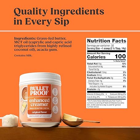 Thông tin sản phẩm Bulletproof Original Creamer, 14.8 Ounces, Keto Coffee Creamer with MCT Oil and Grass-Fed Butter, Supports Brain Function