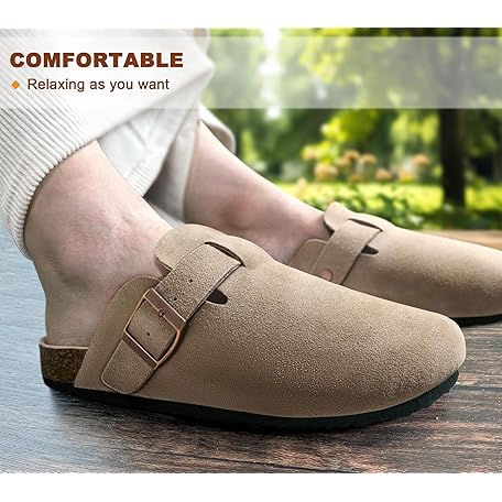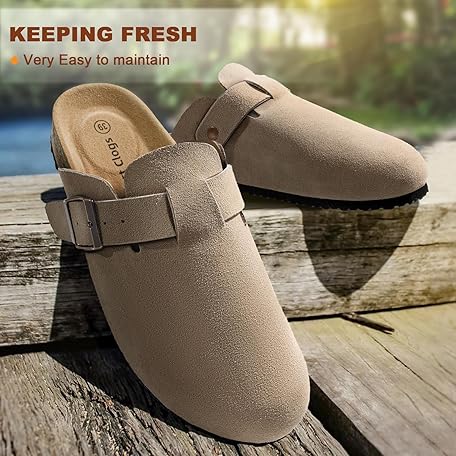 • BULLIANT Women Suede Clogs Mules Sandals Slippers Potato Shoes-Cushioned Coak Footbed Crease-Resist Leather Upper