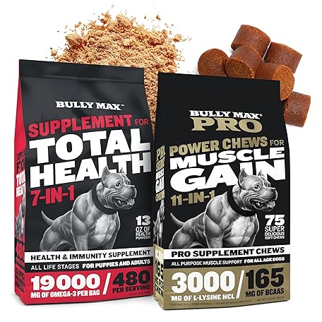 Thông tin sản phẩm Bully Max Total Health & Muscle Builder Bundle – 7-in-1 Multivitamin Powder + 11-in-1 Power Chews – Premium Nutrition for All Breeds, Puppies & Adults – Immune Support & Muscle Gain