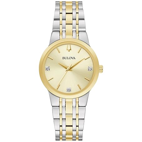 Sản phẩm Bulova Ladies' Modern Two-Tone Stainless Steel 3-Hand Quartz Watch, Diamond Accent Gold Dial Style: 98P224 đang được bán với giá ưu đãi là $310.65 tại nước Mỹ.