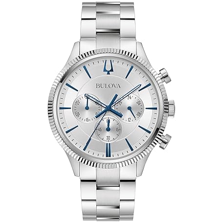 Thông tin sản phẩm Bulova Men's Classic 6-Hand Chronograph Quartz Silver Stainless Steel Watch, 24 Hour Time, Luminous Hands, 43mm, Style:96A321