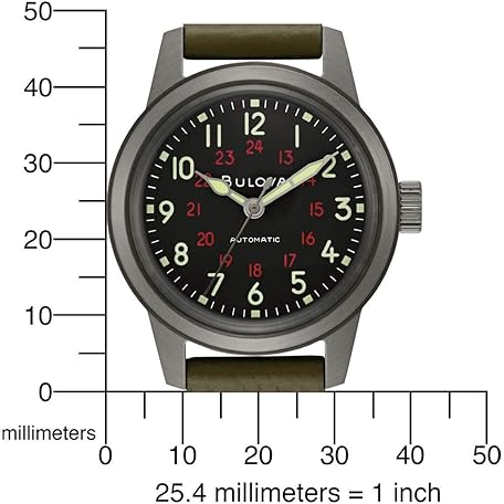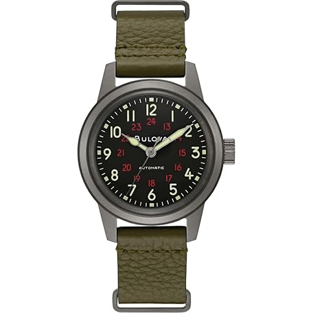Thông tin sản phẩm Bulova Men's Military Heritage Hack Stainless Steel 3-Hand Automatic Watch, NATO Leather Strap, Luminous Hands and Markers