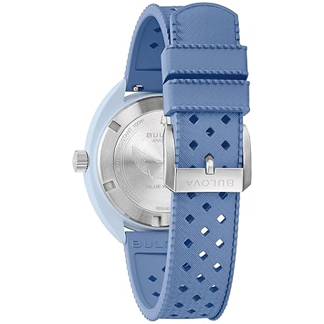 Bulova Oceanographer Snorkel Amazon Exclusive Ceramic Case and White Perforated Rubber Strap Watch, Day Date 100M WR
