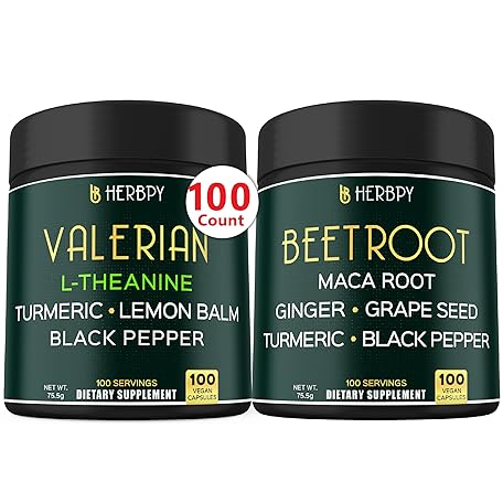 Bundle 5in1 Valerian Root Supplement & 6in1 Beet Root Capsules - Support Restful Night, Heart Health, Digestive and Immune
