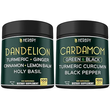 Bundle 6in1 Dandelion Supplement 100 Count & 4in1 Cardamom Supplement 100 Count - for Immune, Heart, Digestion Health & Natural Wellness