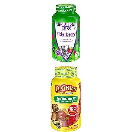 Bundle of Vitafusion Kids Elderberry Gummy Vitamins, 60Ct + Lil Critters Kids Immune C Gummy Supplement: 60 or 120mg Vitamin C Per Serving, 190 Count (95-190 Day Supply)