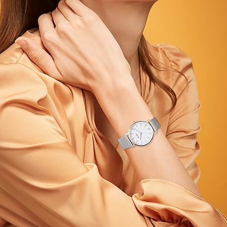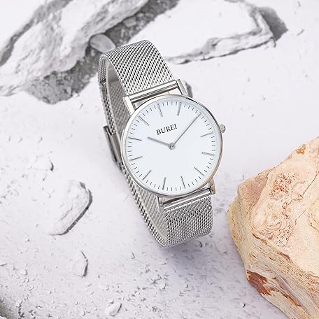 BUREI Womens Fashion Gold Stainless Steel Mesh Watch Analog Quartz Waterproof Ladies Watch Dainty Bracelet Wristwatch for Women,Gifts for Girlfriend