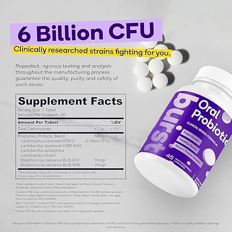 Thông tin sản phẩm Burst Dental Probiotics (45 Count) | Healthy Oral Cavity, Bad Breath, Immune System & Sinus Support | Promotes Upper Respiratory Health and Beneficial Bacteria | Blis K12 & M18 | Packaging May Vary