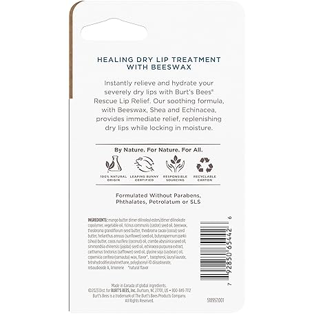 Thông tin sản phẩm Burt’s Bees Rescue Lip Relief with Shea Butter and Echinacea, 100% Natural Origin, 0.35 Ounces(Pack May Vary)
