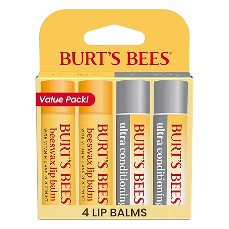 Thông tin sản phẩm Burt's Bees Stocking Stuffers, Lip Balm Beeswax and Ultra Conditioning Lip Balm Pack, Hydrating Lip Moisturizer with Kokum and Shea Butter, Natural Origin Lip Care, 4 Tubes, 0.15oz.