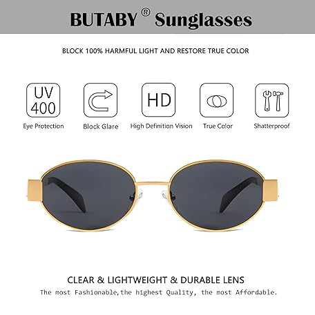 Sản phẩm BUTABY Retro Oval Sunglasses for Women Men Designer Trendy Sun Glasses Classic Shades UV400 Protection đang được bán với giá ưu đãi là $14.8131 tại nước Mỹ.
