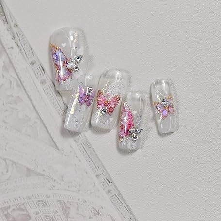 Butterfly Nail Art Stickers Decals Pink Butterfly 5D Embossed Nail Decals Shell Light Butterflies Nail Designs Adhesive Sticker Manicure Accessories for Women Girls DIY Nail Art Decorations Supplies