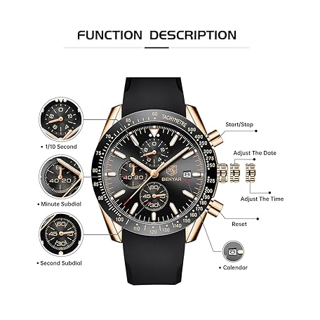 Thương hiệu BY BENYAR là cái tên nổi tiếng được rất nhiều khách hàng trên thế giới chọn lựa. Với kiểu dáng đẹp mắt, sang trọng, sản phẩm BY BENYAR BY BENYAR Watch for Men Analog Quartz Chronograph Waterproof Luminous Designer Mens Wrist Watches Business Work Sport Casual Dress Watch with Silicone Strap Elegant Gifts for Men là sự lựa chọn hoàn hảo nếu bạn đang tìm mua một món cho riêng mình.