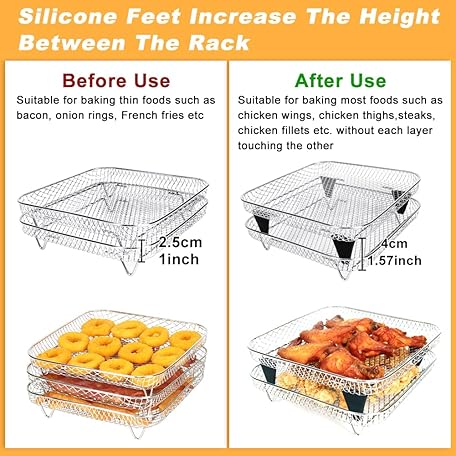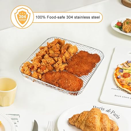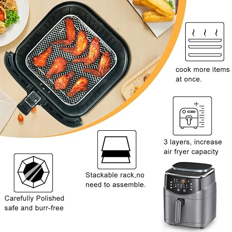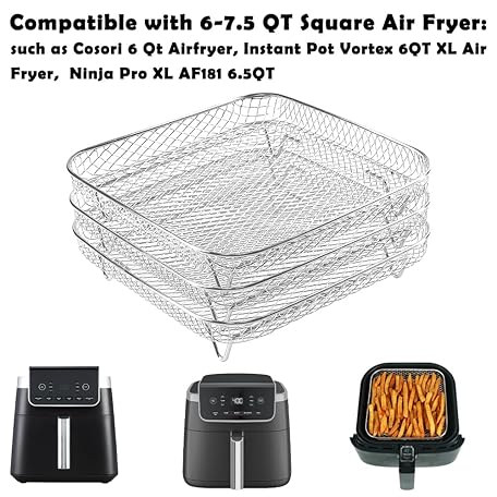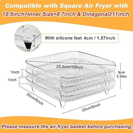 Thông tin sản phẩm BYKITCHEN 8 inch Square Air Fryer Rack, 3pcs Stackable Stainless Steel Dehydrator Rack with Silicon Feet, Square Air Fryer Accessories for Cosori, Instant Vortex, Ninja Pro XL 6.5 QT AF181 & More