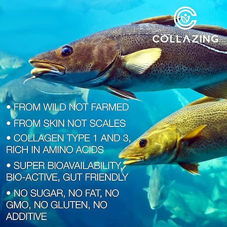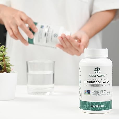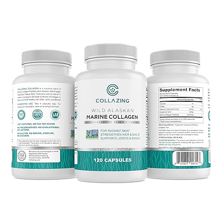 Thông tin sản phẩm C COLLAZING - Alaskan Wild-Caught Marine Collagen Peptides with Hyaluronic Acid & Vitamin C - Supports Skin, Hair, Nails, Joints & Bones - Type 1 & 3 Collagen for Women & Men - 120 Powder Capsules