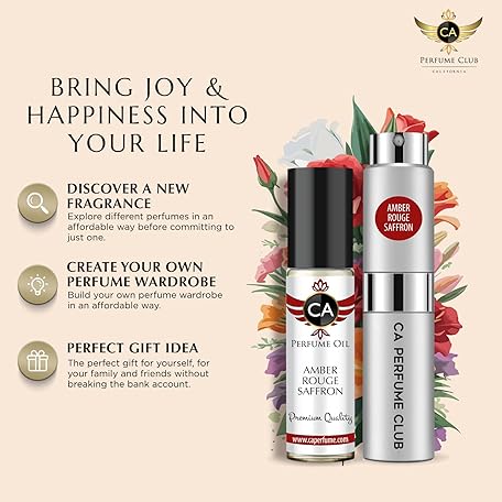 Thương hiệu CA Perfume là cái tên nổi tiếng được rất nhiều khách hàng trên thế giới chọn lựa. Với kiểu dáng đẹp mắt, sang trọng, sản phẩm CA Perfume Duo Impression of Amber Rouge Saffron For Women and Men Fragrance Layering Set Bundle – Eau De Parfum + Body Oil Roll-On Bottle (Set of 2, 0.27 Fl Oz + 0.33 Fl Oz) là sự lựa chọn hoàn hảo nếu bạn đang tìm mua một món cho riêng mình.
