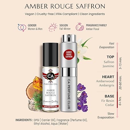 Sản phẩm CA Perfume Duo Impression of Amber Rouge Saffron For Women and Men Fragrance Layering Set Bundle – Eau De Parfum + Body Oil Roll-On Bottle (Set of 2, 0.27 Fl Oz + 0.33 Fl Oz) đang được bán với giá ưu đãi là $29.4191 tại nước Mỹ.