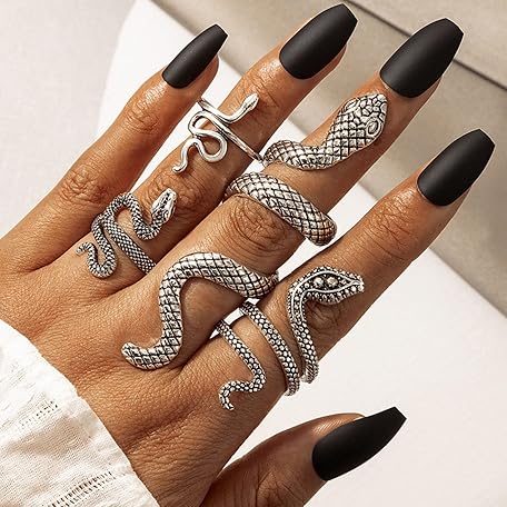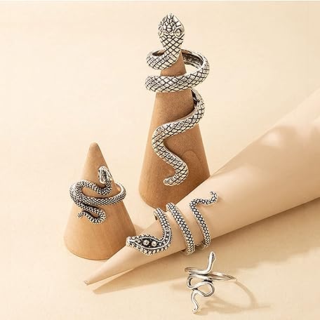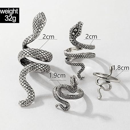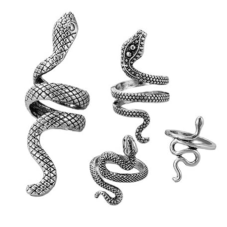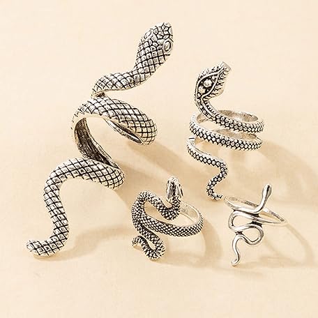 Sản phẩm Caiyao Vintage 4Pcs Punk Gothic Adjustable Snake Serpent Ring Set Goth Cool Boho Reptile Cobra Animal Statement Finger Exaggerated Jewelry for Women Teens đang được bán với giá ưu đãi là $5.1121 tại nước Mỹ.