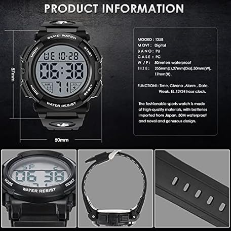 Sản phẩm CakCity Mens Sports Watches Military Classic Stopwatch Large Dial Electronic LED Backlight Wristwatch 50M Waterproof Digital Watch for Mens with Large Number đang được bán với giá ưu đãi là $19.6091 tại nước Mỹ.