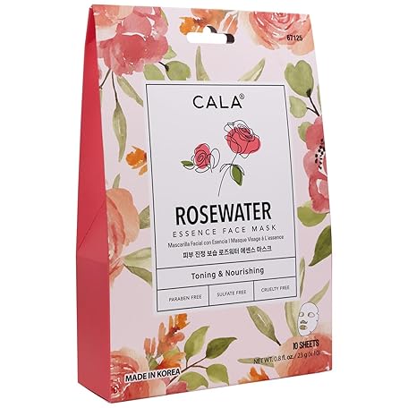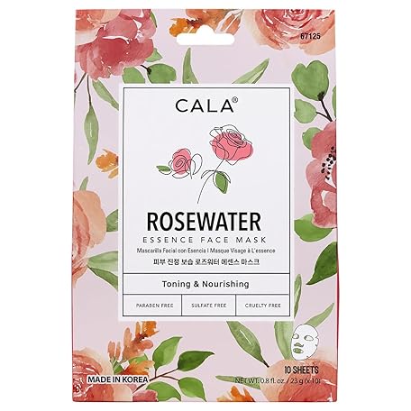 Cala Nourishing Essence Face Masks: Rose Water, 10 count- Hydrating Sheet Masks for Dullness, Dryness & Uneven Texture, K-Beauty Skincare for All Skin Types