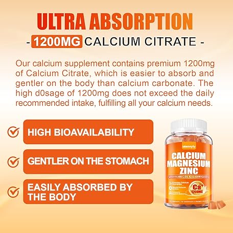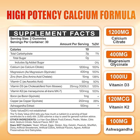 Thông tin sản phẩm Calcium 1200 mg with Vitamin D3 Gummies for Adults - Calcium Citrate with Vitamin D3 K2, Magnesium, Zinc, Boron, Copper and Ashwagandha - Extra Absorption Calcium Supplement for Women Men