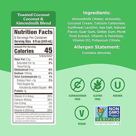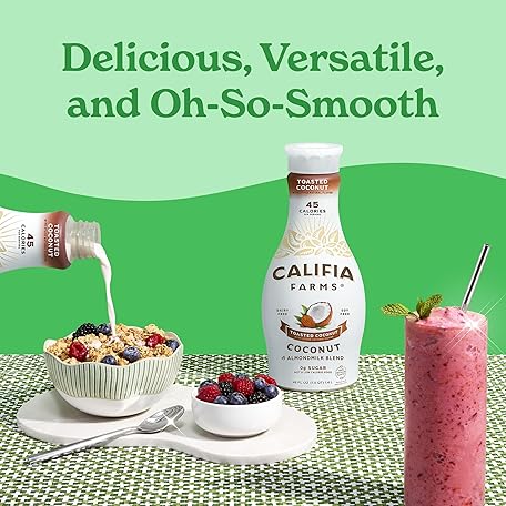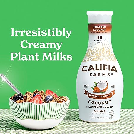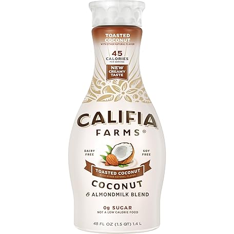 Thông tin sản phẩm Califia Farms - Toasted Coconut Almond Milk, 48 Oz, Dairy Free, Plant Based, Vegan, Gluten Free, Non GMO, Sugar Free, High Calcium, Smoothie.