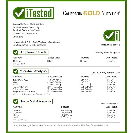 Thương hiệu California Gold Nutrition là cái tên nổi tiếng được rất nhiều khách hàng trên thế giới chọn lựa. Với kiểu dáng đẹp mắt, sang trọng, sản phẩm California Gold Nutrition Royal Jelly, 500 mg, 120 Veggie Capsules là sự lựa chọn hoàn hảo nếu bạn đang tìm mua một món cho riêng mình.