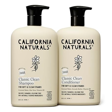 California Naturals Coconut Shampoo & Conditioner, Natural, Vegan, Cruelty, Silicone, Paraben, and Sulfate Free Shampoo, All Hair Types, 20 Fl Oz (Pack of 2), Classic Clean Coconut