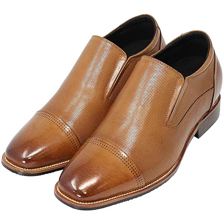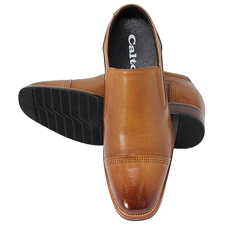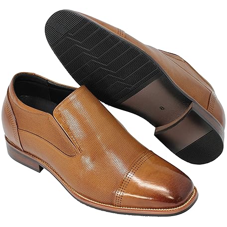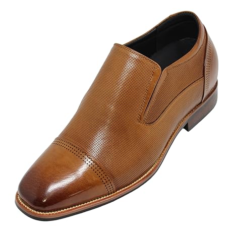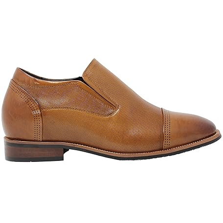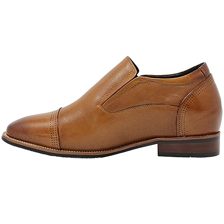 • CALTO Men's Invisible Height Increasing Elevator Shoes - Brown Premium Leather Slip-on Formal Loafers - 3 Inches Taller - Y10658 - Size 7 D(M) US