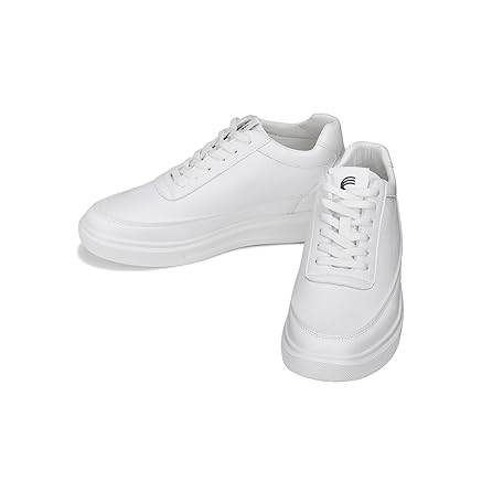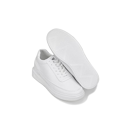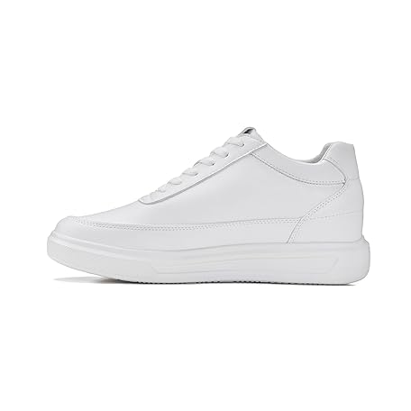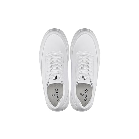 • CALTO Men's Invisible Height Increasing Elevator Shoes - Pure White Light-Weight Lace-up Leather Sporty Sneakers - 2.8 Inches Taller - X1647 - Size 9 D(M) US