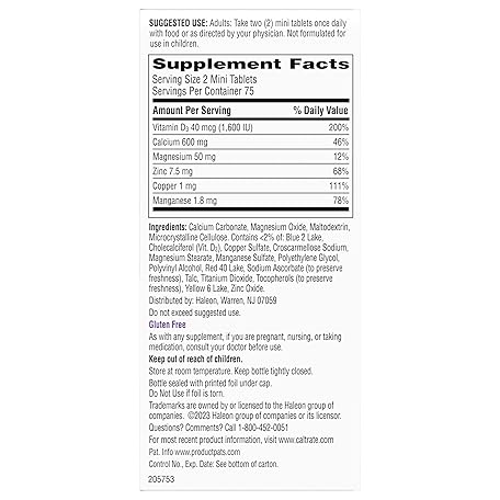 Thương hiệu Caltrate là cái tên nổi tiếng được rất nhiều khách hàng trên thế giới chọn lựa. Với kiểu dáng đẹp mắt, sang trọng, sản phẩm Caltrate Minis 600 Plus D3 Plus Minerals Calcium and Vitamin D Supplement Tablets, Bone Health and Mineral Supplement for Adults - 150 Count là sự lựa chọn hoàn hảo nếu bạn đang tìm mua một món cho riêng mình.