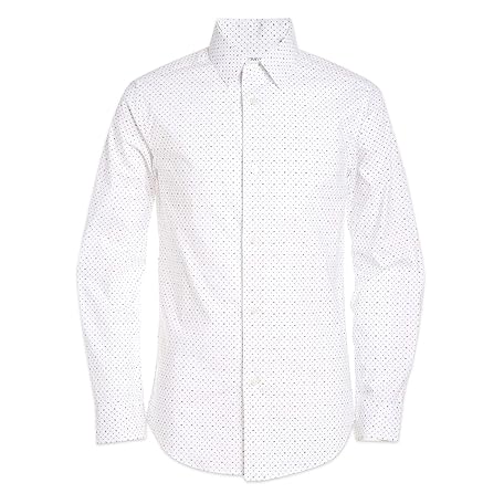 Calvin Klein Boys' Long Sleeve Patterned Dress Shirt, Button-Down Style with Cuffs & Shirttail Hem