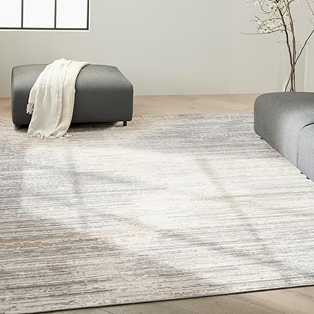 Calvin Klein Calvin Klein CK011 Verdant Ivory Grey 7'10" x 9'10" Area Rug - Easy Clean, Non Shedding, Bed Room, Living Room, Dining Room, Kitchen (8' x 10')