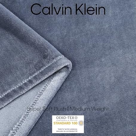 Thông tin sản phẩm Calvin Klein Calvin Klein - King Size Blanket, Ultra-Soft Plush Bedding, Self-Hem Binding for Tailored Finish, Throw Blanket for Couch & Bed (Slate Blue)
