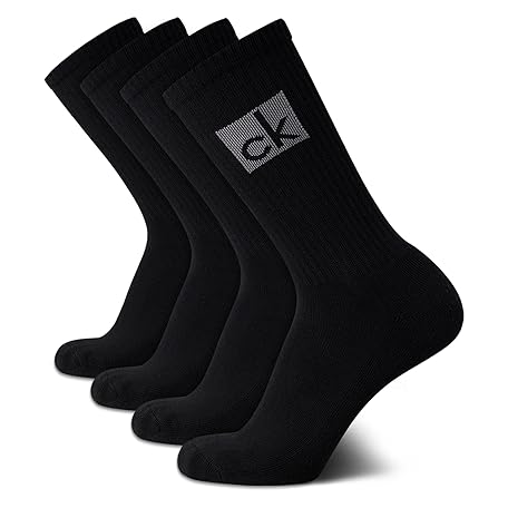 Calvin Klein Mens Crew Socks - 4 Pack Performance Cotton Blend Cushion Comfort Mid-Calf Athletic Socks for Men (Sizes 7-12)