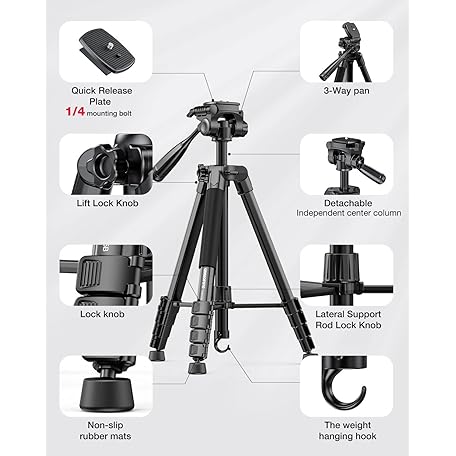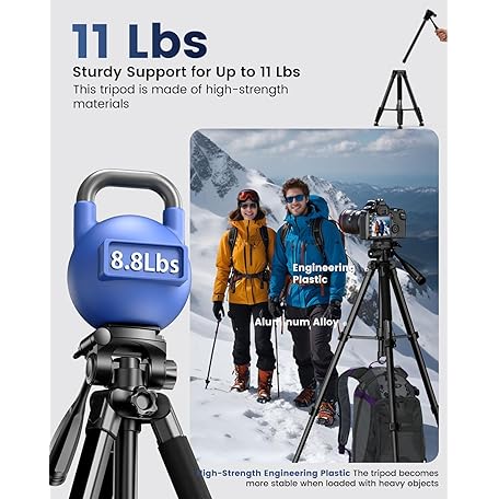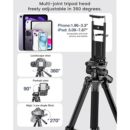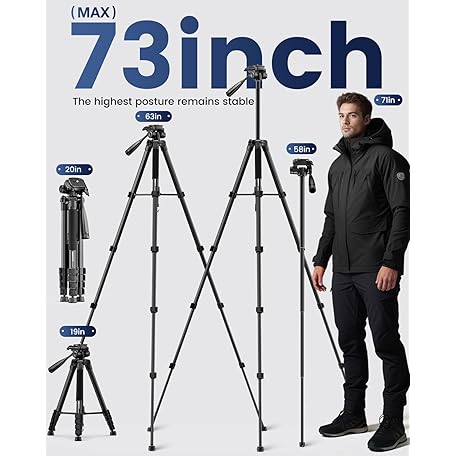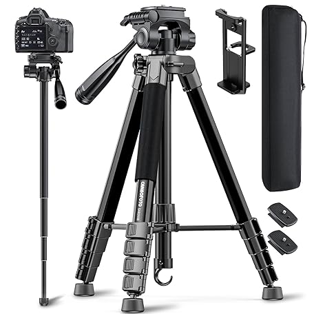 Thông tin sản phẩm CAMBOFOTO 73" Camera Tripod and Monopod, Professional Aluminum Tripod Stand for Mirrorless Camera/DSLR/Cell Phone/Camcorder/GoPro, with Phone Holder and Travel Bag (Black)
