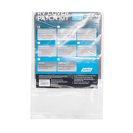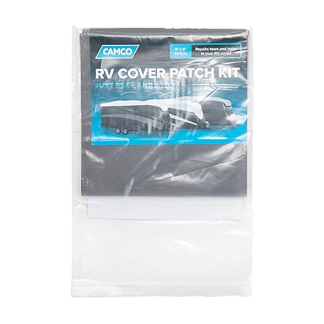 • Camco ULTRAGuard Camper & RV Cover Patch Kit - Repairs Holes and Tears in Trailer Cover - Features Easy Peel & Stick Application - 9-Inches x 6-Feet (45795)