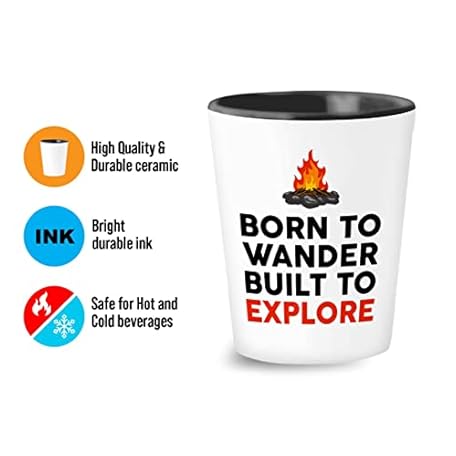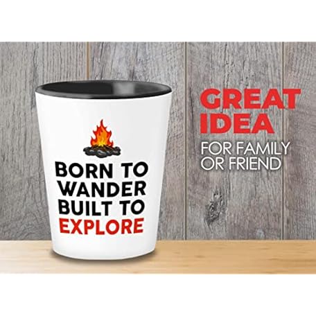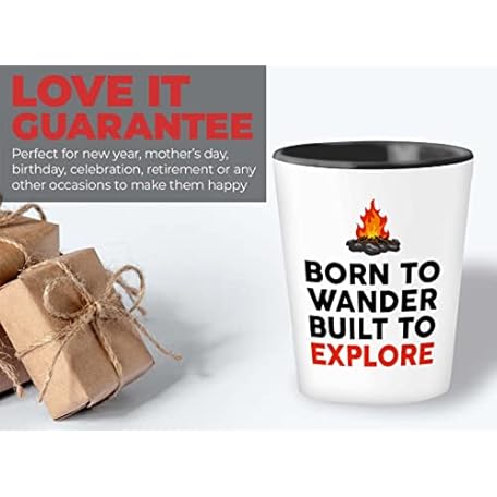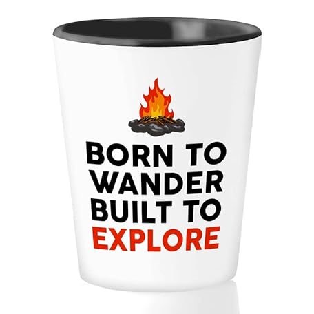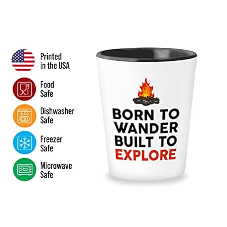 • Camping Shot Glass 1.5oz - Born To Wander - Camper Lover Cabin Adventure Travelling Backpacking Hikers Activity Explore Forest Journey
