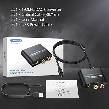 Thông tin sản phẩm CAMWAY Digital to Analog Converter,192kHz DAC Converter SPDIF/Toslink Optical to RCA,Optical to 3.5mm Audio Adapter for HDTV, DVD, Blu-Ray Players and Game Consoles to 3.5mm/RCA