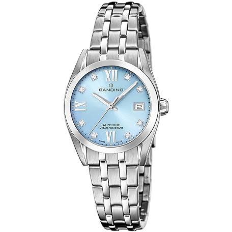 Candino C4703/F Women's Watch Couple Classic Silver Stainless Steel Case Silver Stainless Steel Strap, blue, Bracelet