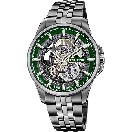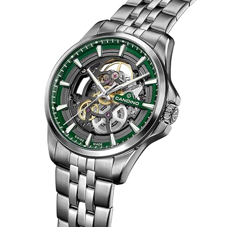 Candino Men's Watch C4782/2 Automatic Case 316L Stainless Steel Black Strap 316L Stainless Steel Black Green, Green, Bracelet