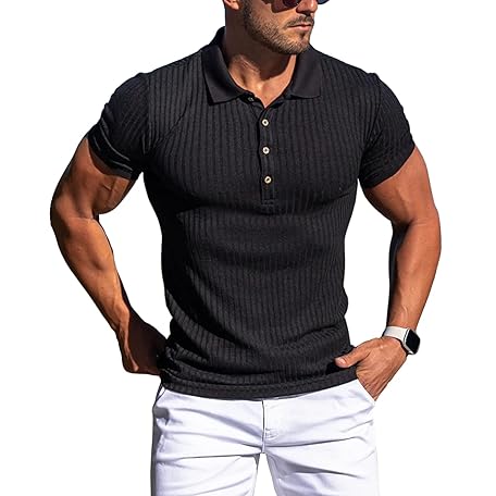 Sản phẩm CANGHPGIN Collared Muscle Polo Shirts Men Slim Fit Textured Knit Polo Shirts Short Sleeve Button Down Shirts Casual Stylish đang được bán với giá ưu đãi là $28.3291 tại nước Mỹ.