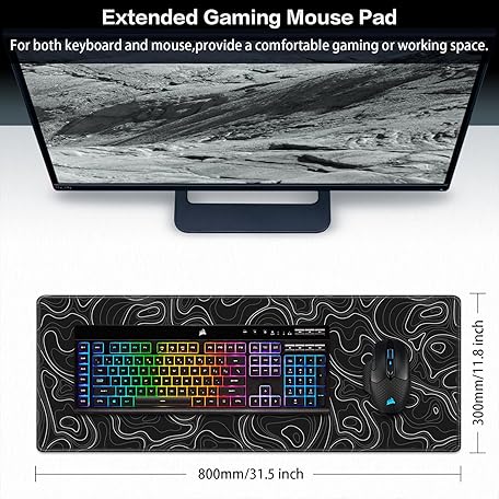 Thông tin sản phẩm Canjoy Gaming Mouse Pad, Topographic Contour Mouse Pad 31.5x11.8inch Large Extended Computer Mouse Mat Keyboard Full Desk Mousepad for Gaming, Office, Home